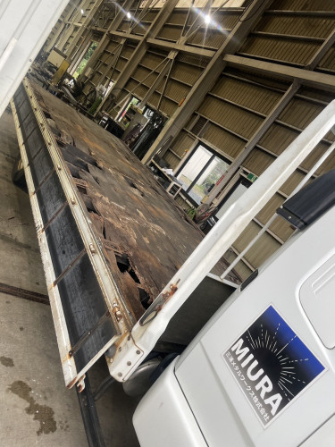 荷台の鉄板をはがした後のトラックです🚚あまりのBOROBORO具合に衝撃を受けました😨このボディで何トンもの製品を運んでいたのかと思うと恐怖すら感じます💦