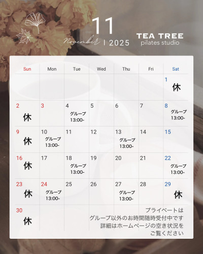 [ピラティススタジオ TEA TREEティーツリー] 11月のグループレッスン