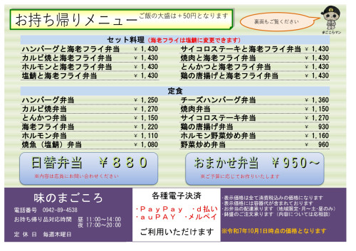 テイクアウトメニュー表(1)