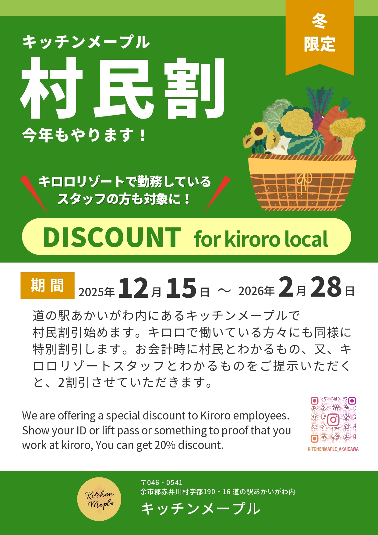 〈キッチンメープル〉村民割のお知らせ