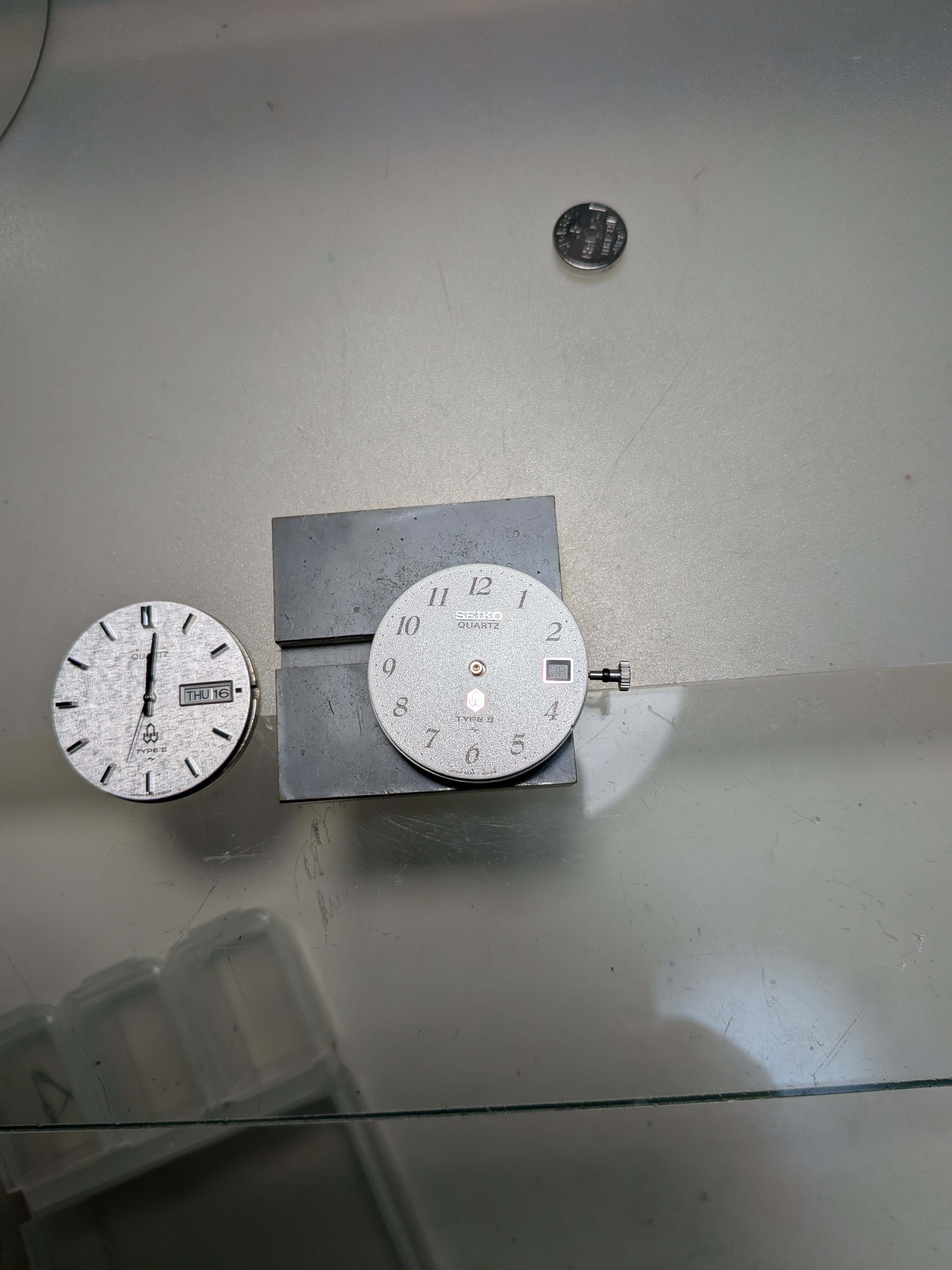 古い部品取りから探すとTYPE2 の文字盤がありました。さあこれから文字の移殖です。古希寸前のおじさんは若い女の子に喜んでもらおうと顕微鏡をのぞきながら移殖しました。