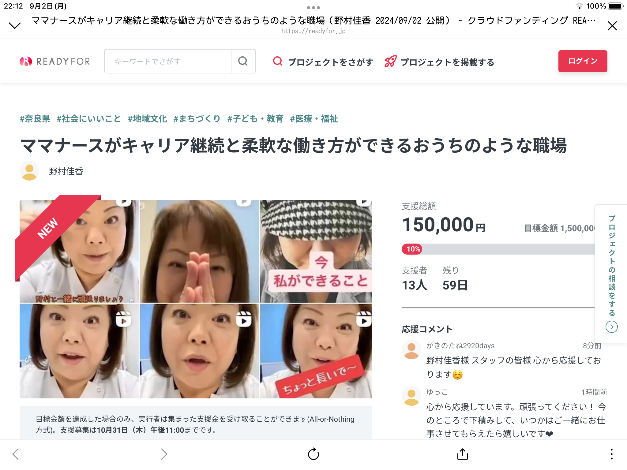 9/2 朝10時よりクラウドファンディングの挑戦が始まりました。