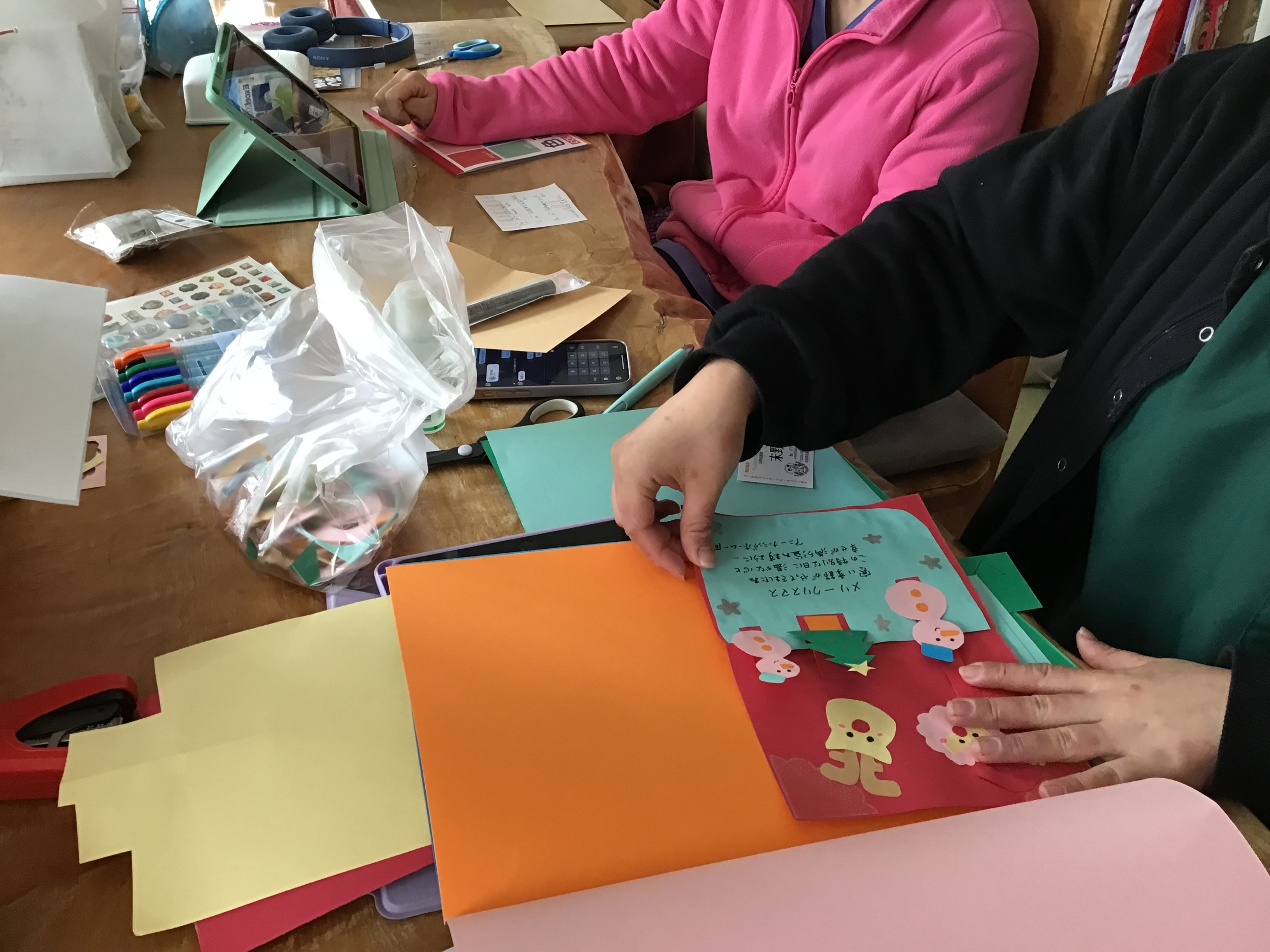 ご利用者さんへお届けするクリスマスカードを作成中🎄