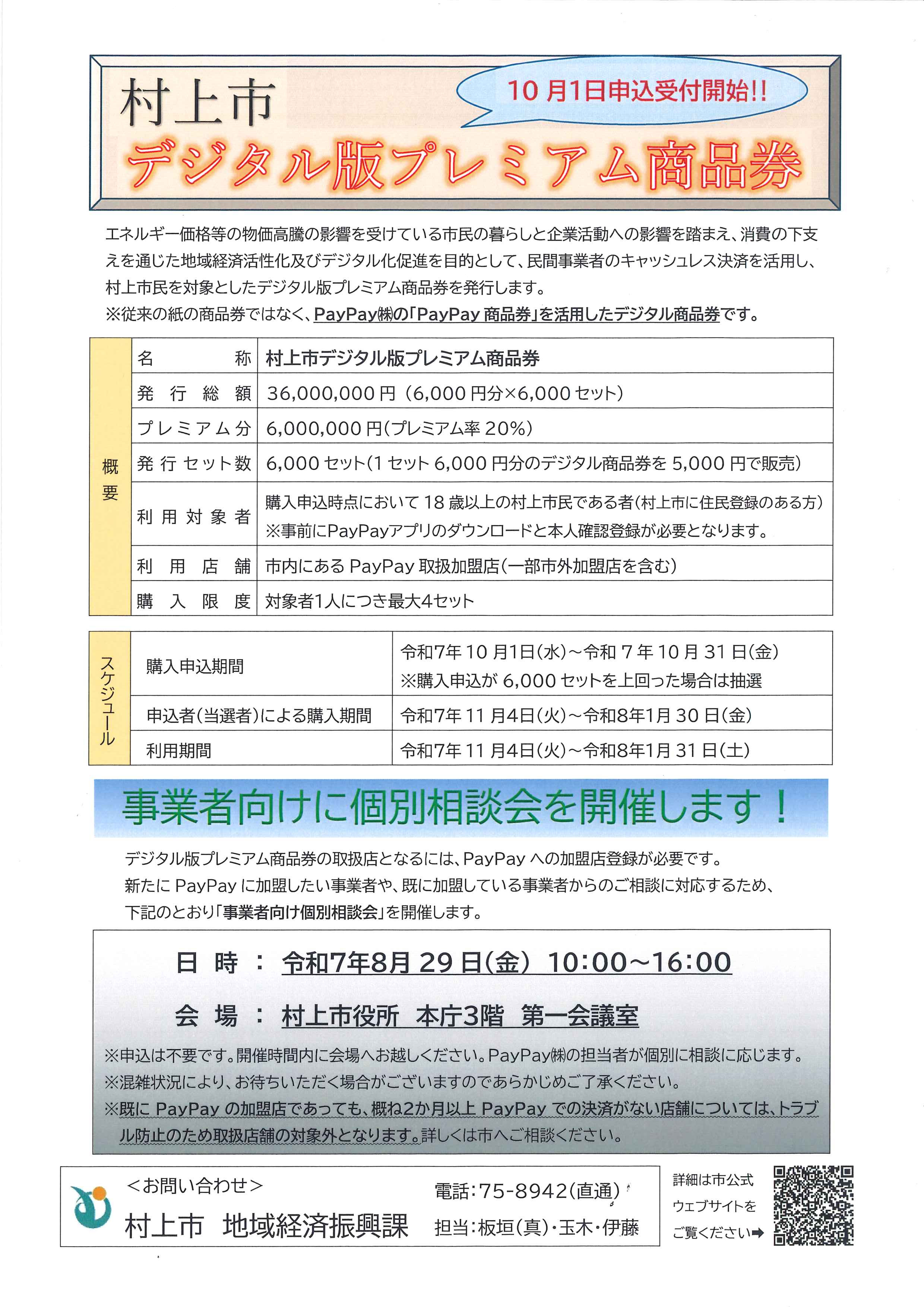 【村上市デジタル版プレミアム商品券】事業者向け個別相談会のご案内(チラシ).pdf (0.42MB)