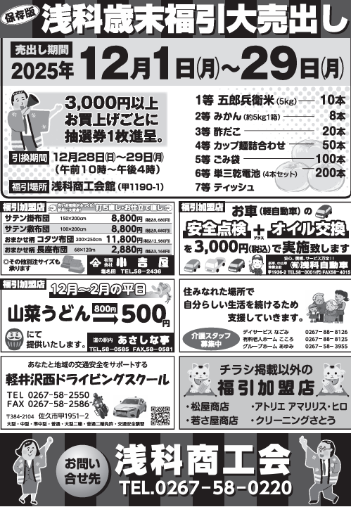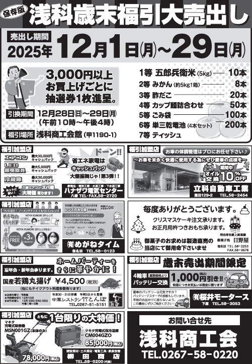 福引加盟店で3,000円以上お買い上げで抽選券1枚贈呈!