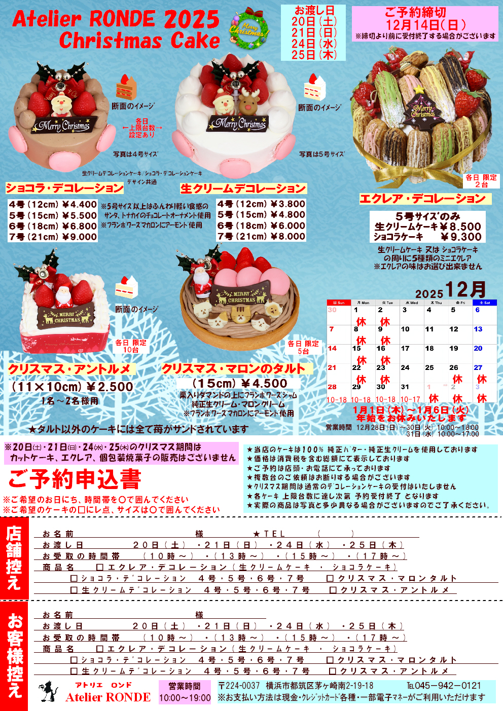 ★価格は消費税を含む総額にて表示しております。)期間は通常のデコレーションケーキの受付はしておりません。