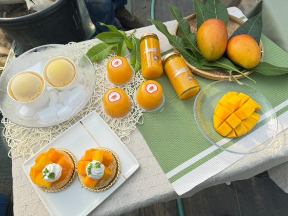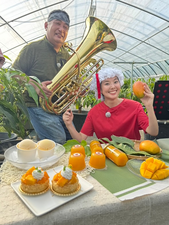8/22(金)のRKB毎日放送「タダイマ!」でマンゴー農家緒方ファームさんが生中継されました⭐生産者の緒方さんはチューバ奏者♬音楽家という経験を生かしマンゴーにクラシック(モーツァルト)を聞かせる栽培方法をとられているんです!中継の中では緒方さんのマンゴーを使った当店のスイーツもご紹介頂きました👏イートインではマンゴーパフェのご提供もはじまっています😄✨ぜひ今が旬の甘くてジューシーなマンゴースイーツをお試しください💓