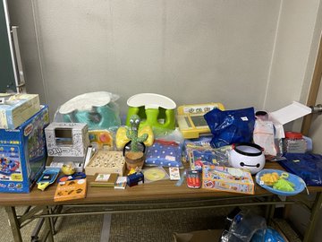 会員からとってもたくさんの洋服やおもちゃ、雑貨が集まりました!