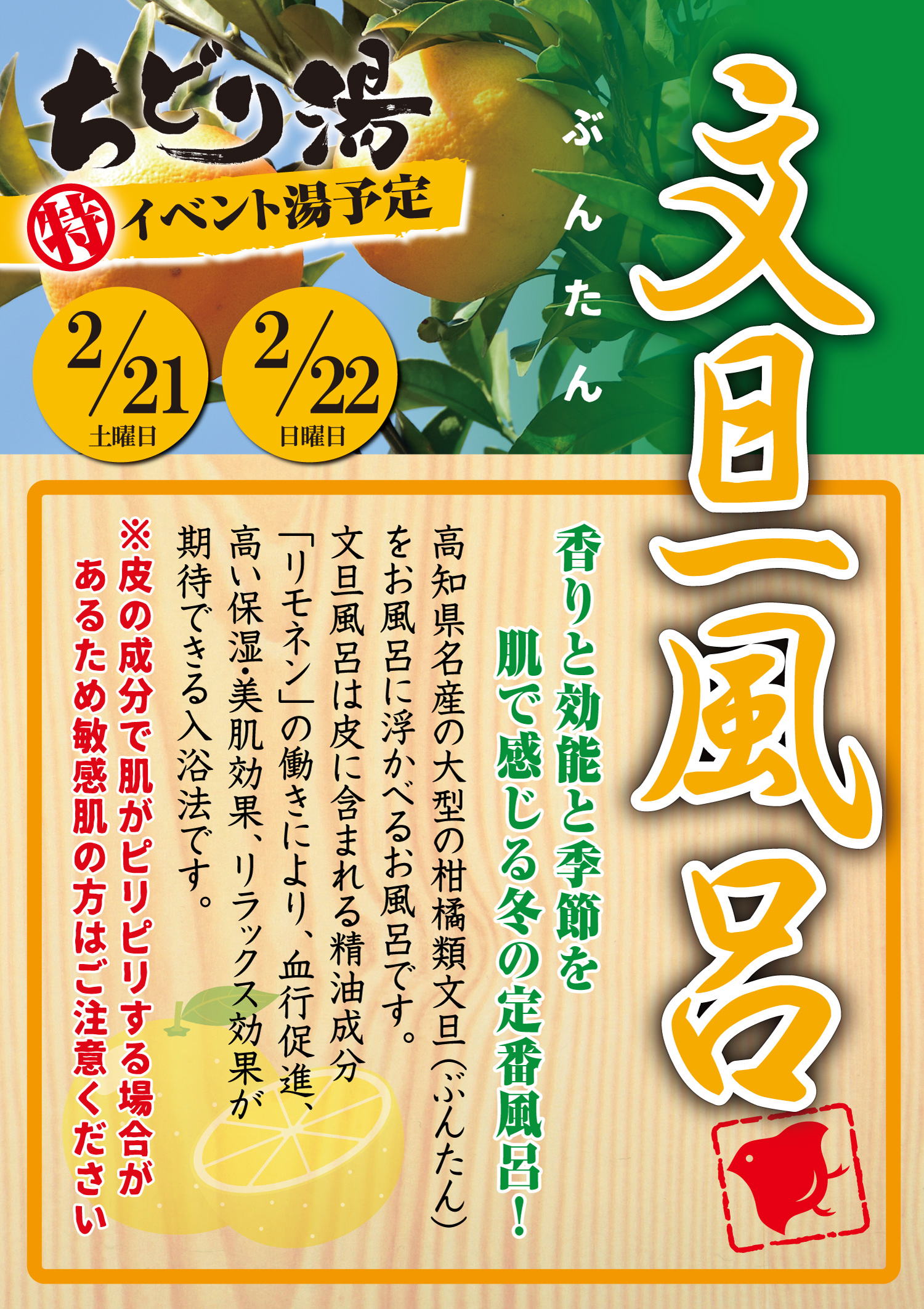 ちどり湯としても、この「文旦」を使ったお風呂は初の試みです。