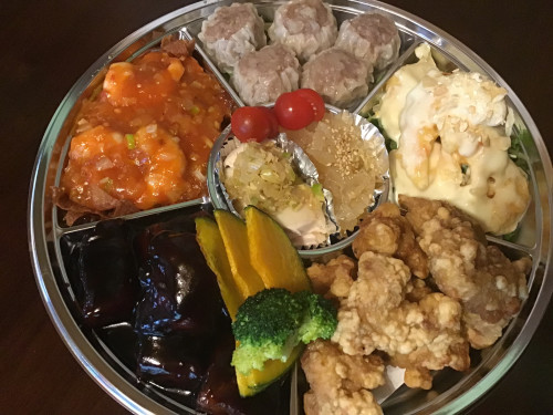 名物黒すぶた 海老のチリソース 海老のマヨソース 鶏の唐揚げ 大きい肉焼売 前菜盛り合わせ