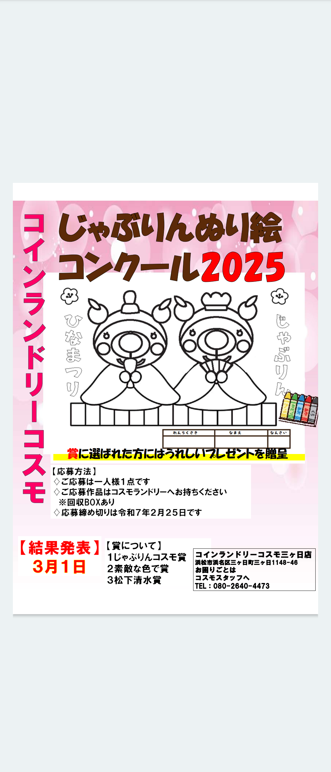 じゃぶりん塗り絵コンクール開催!!