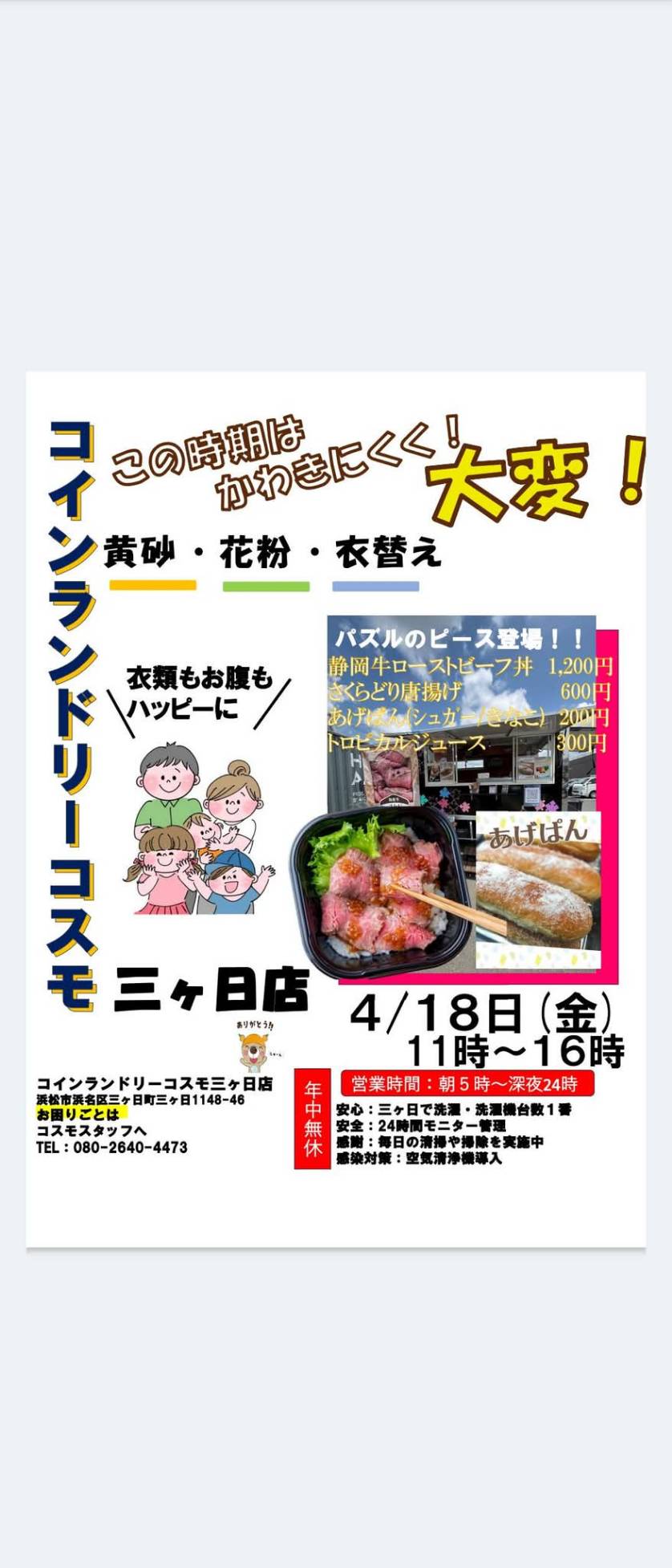 ◯4月18日はあの、ローストビーフ、あげぱんのパズルのピースさんが三ヶ日店に出店!
