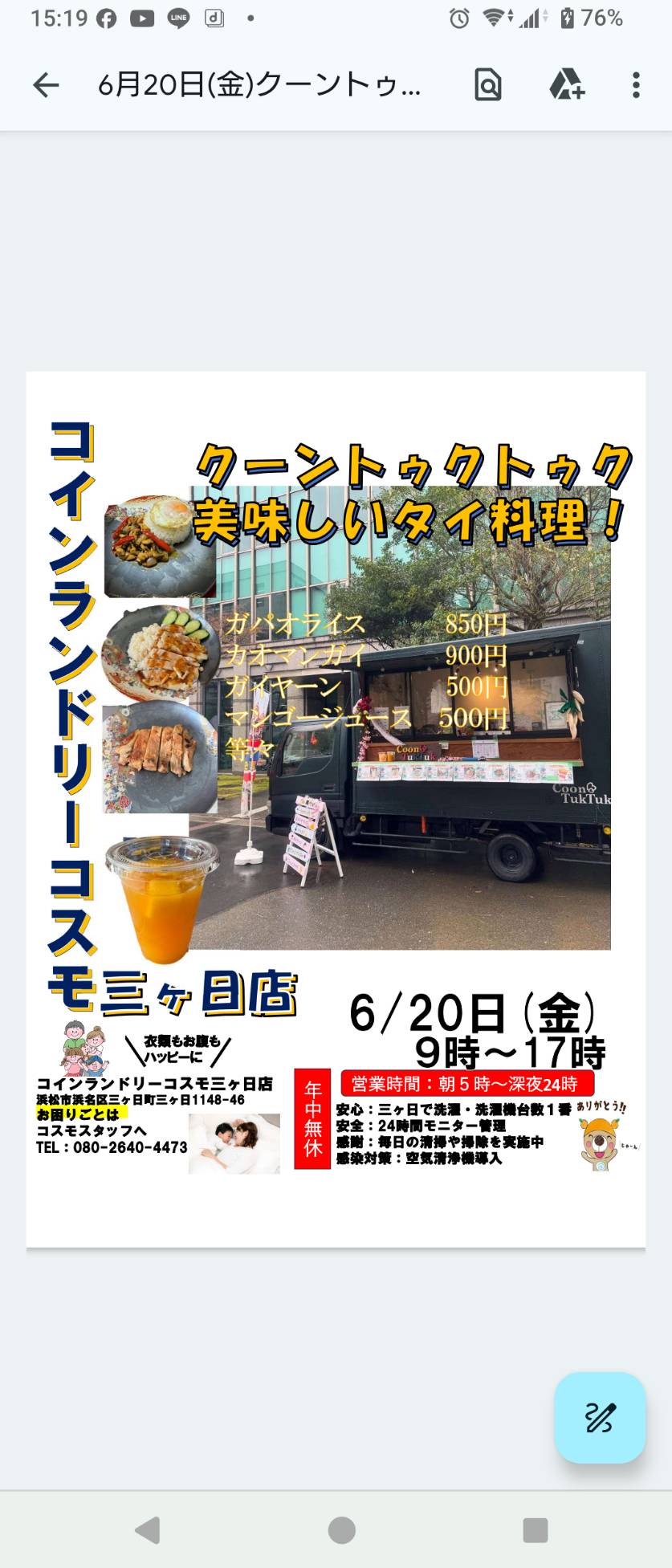 ◯20日金曜日、あの旨すぎるタイ料理のクーントゥクトゥクさんが三ヶ日店に!29日はだんごや二郎三郎さんだ!