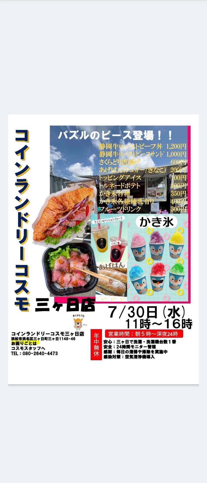 ◯三ヶ日店30日水曜日パズルのピース!ローストビーフ!かき氷!等々!