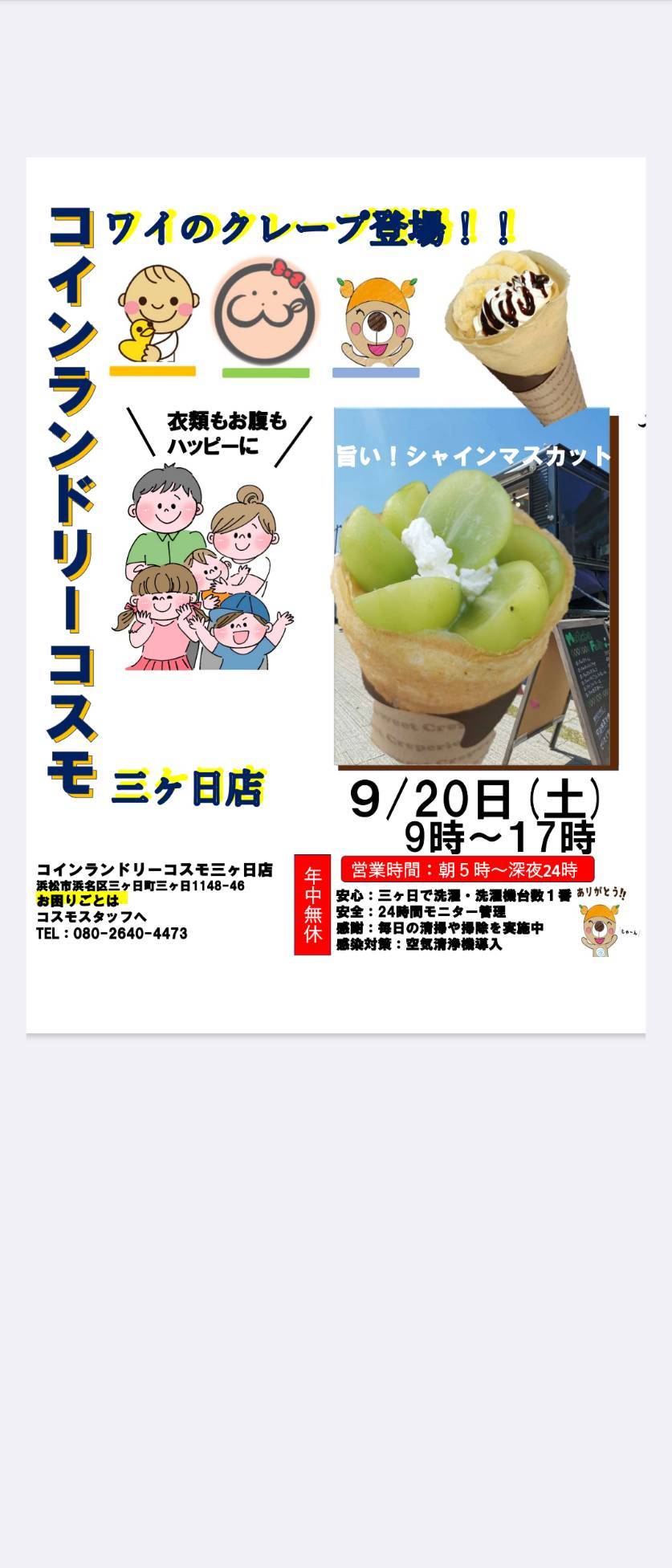 9月20日土曜日!!あのお値段優しく味美味しいワイのクレープさんがコスモ三ヶ日店にきます!