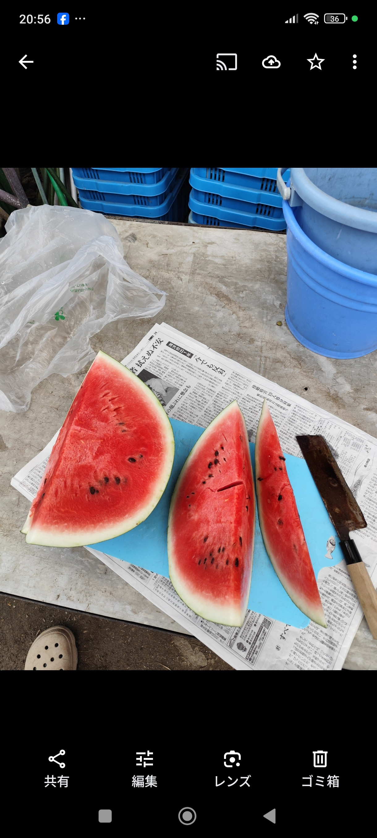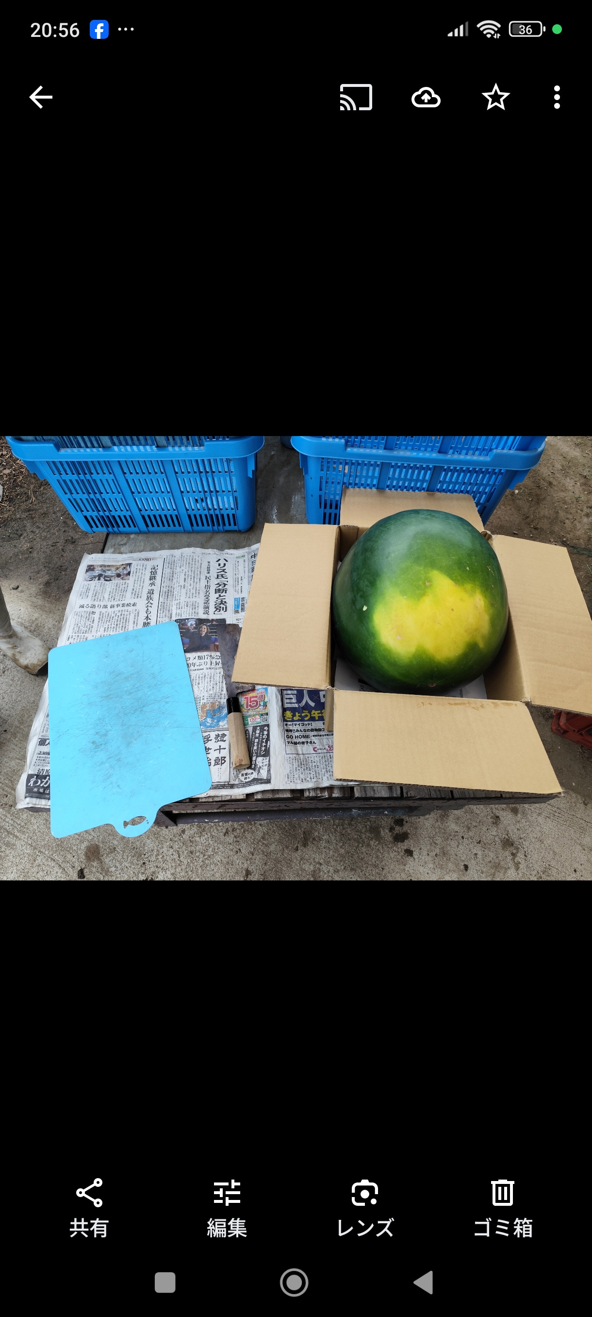 そんな中 地元の友達からでっけぇスイカのさしいれー°˖☆◝(⁰▿⁰)◜☆˖°