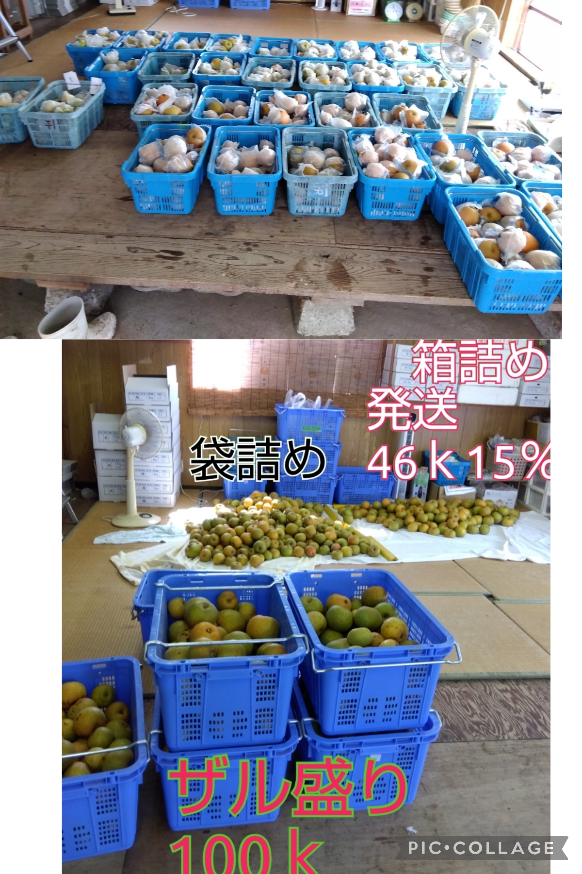 従来でしたら ざっくりと 箱詰め 50%前後 袋つめー40% コンテナ、廃棄 含めて10% 位ですが
