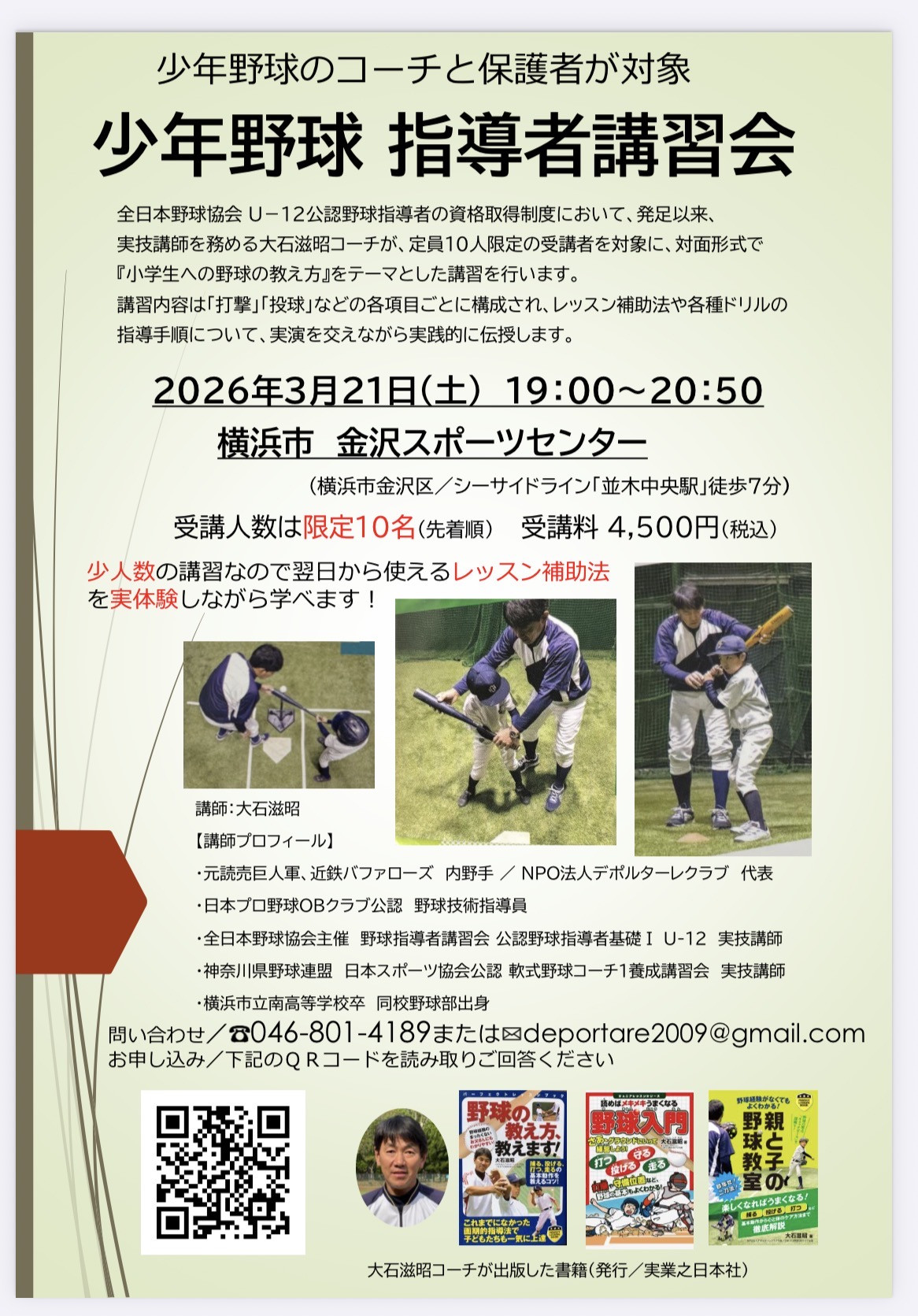 講師:大石滋昭(日本プロ野球OBクラブ認定 野球指導員)