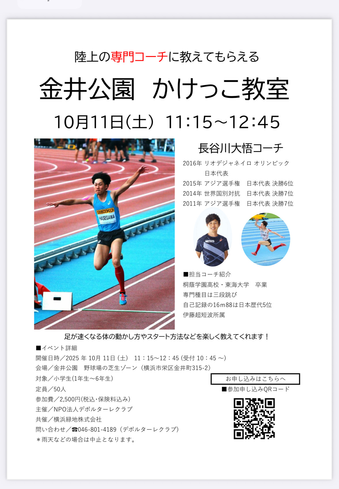 なお、10/11に予定した金井公園かけっこ教室は悪天候のため中止となりました。