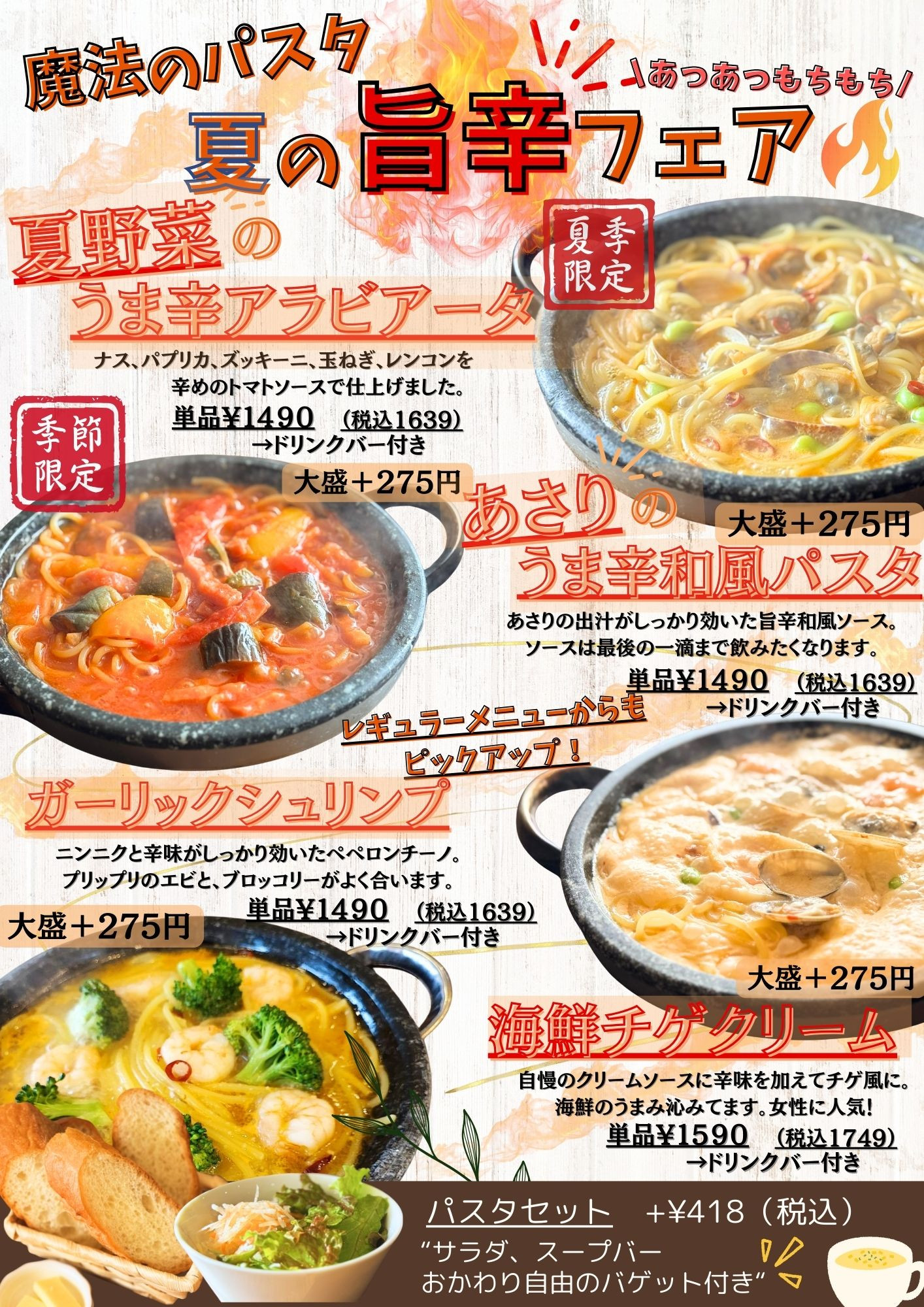 愛知川店の魔法のパスタの夜営業は、串カツ華楽と同時営業となります。