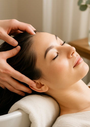 内容: オイルデトックスで「頭皮の呼吸」を確保した後、自律神経を整える深部マッサージ。