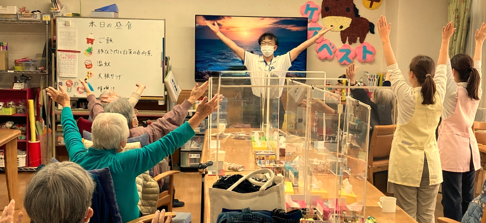 こちらのデイサービス様では、月に4回〜5回、椅子に座って行う「シニアフィットネスフェス」を開催しております。