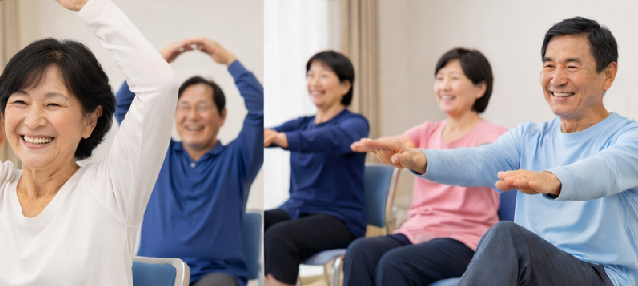 〈西宮市委託事業〉 介護予防・健康増進チェアエクササイズ 西宮市の介護予防政策事業「湯友講座」にて、 2026年3月「介護予防・健康増進チェアエクササイズ」を開催いたします。