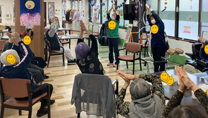 座位でのリズム運動と認知課題を組み合わせ、身体機能維持と前頭前野活性の双方にアプローチしました。