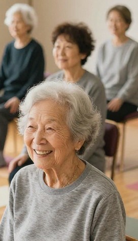 意欲向上や情緒の安定、社会的交流の促進にも寄与します。継続的な実施により、生活機能の維持および介護予防への効果が期待される運動プログラムです。