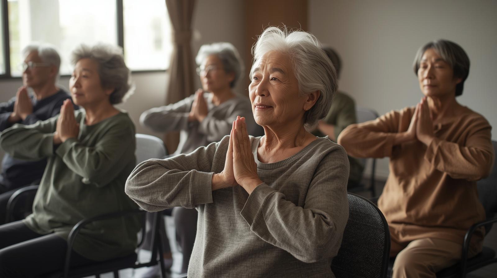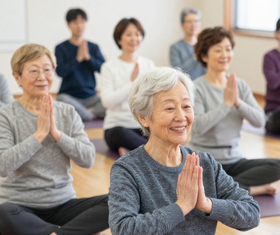 椅子に座ったまま安全に実施できる、フレイル予防および健康維持・増進を目的としたプログラムとして実施。高齢者の方々および介護職員の皆様を対象に、免疫力の維持・向上およびストレス軽減を目的とした「チェアーMIXヨガ」を実施しました
