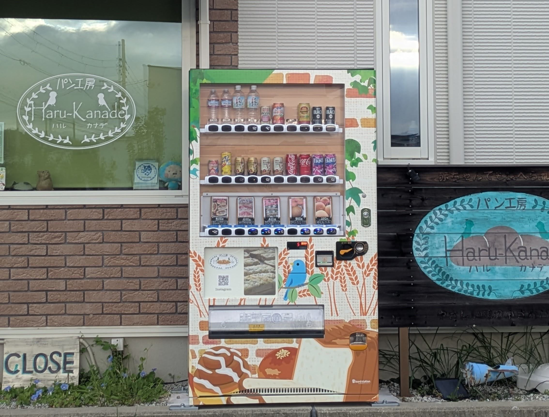 店舗前に24時間利用可能なパンの自販機を設置しました。サンドイッチやクリームパンなどの冷蔵商品を日替わりで入れています。出勤前のお昼ご飯調達に、小腹がすいたときのおやつにぜひご利用ください。飲み物も、スーパーやコンビニでは買えないこだわり商品も入れています。