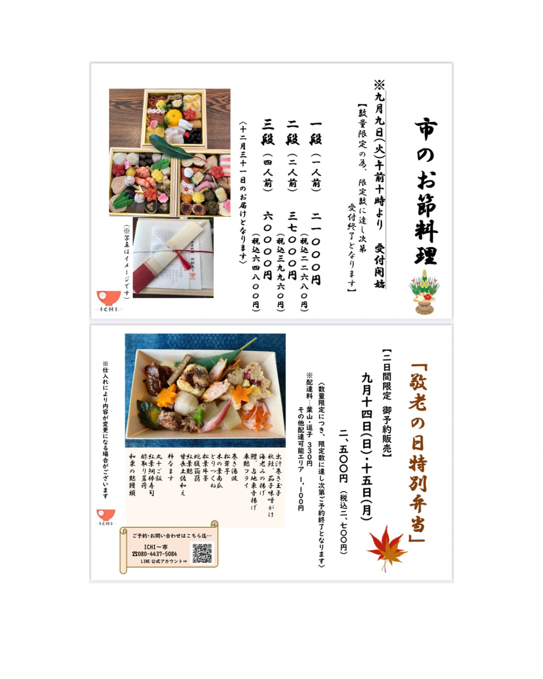 🔹『敬老の日特別弁当』🍁は両日完売✨にて
