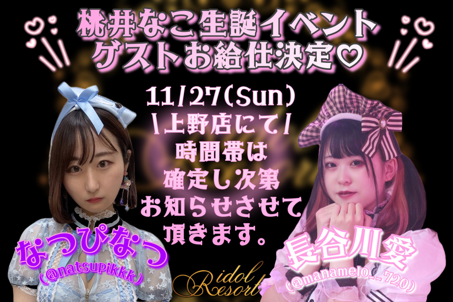 【上野店】桃奈りさこ&白石夏菜 ゲストお給仕決定♡