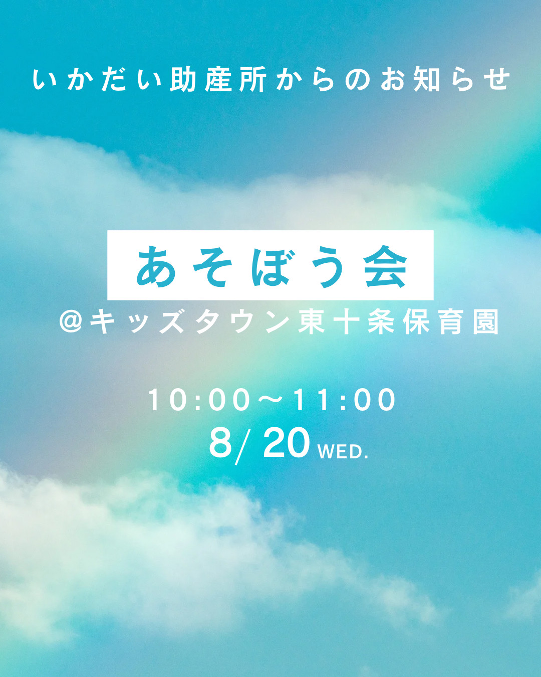 8/20(水)キッズタウン東十条保育園のあそぼう会が行われます