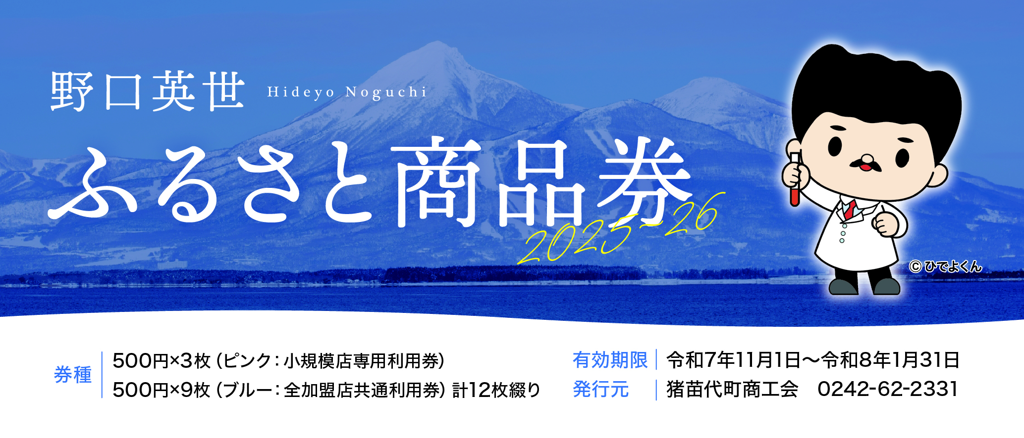 【お問合せ先】 野口英世ふるさと商品券事務局【猪苗代町商工会内】 TEL:0242-62-2331