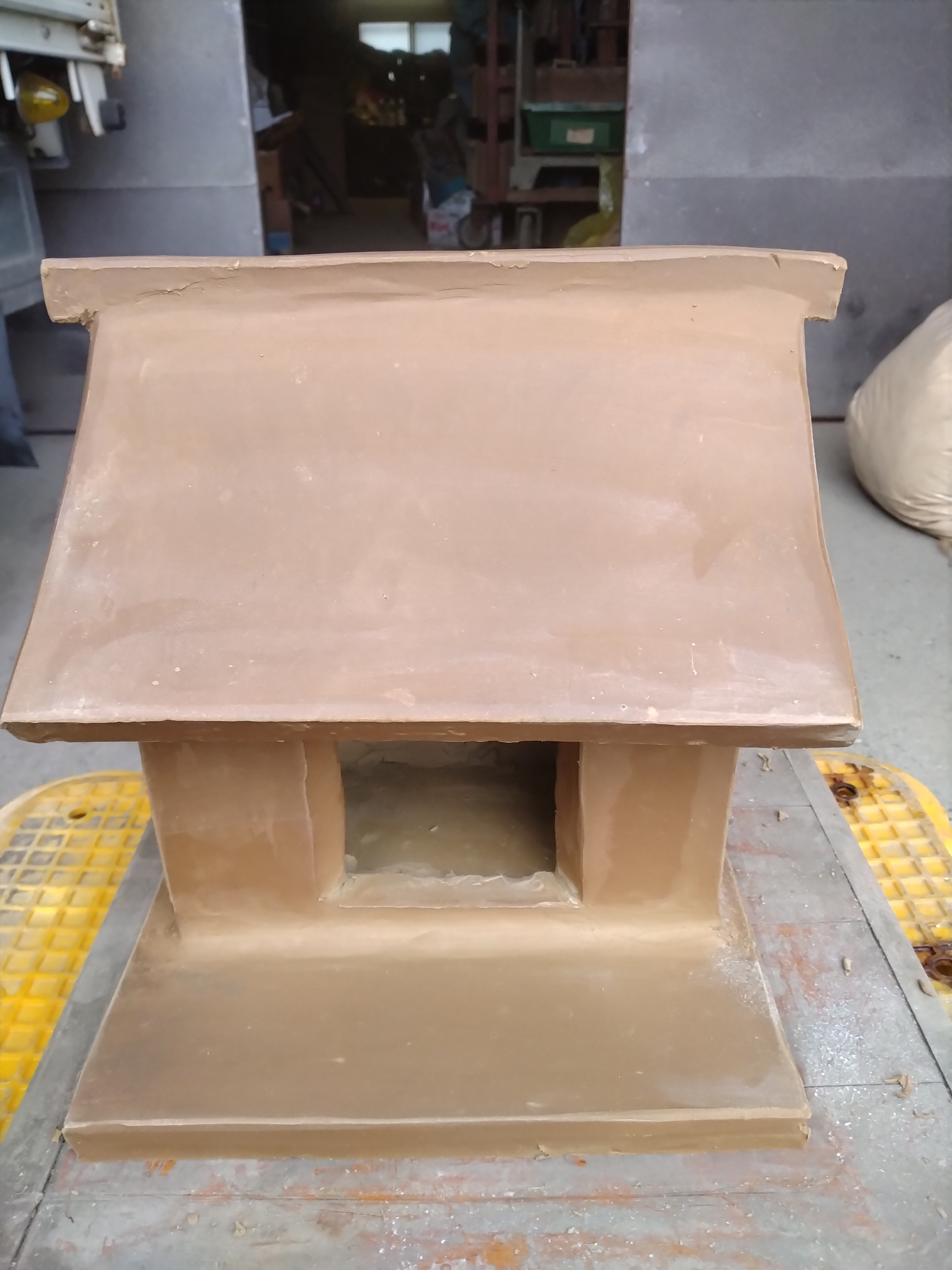 祠が乾燥までは出来ていますが、1窯分の瓦が揃いませんでした。焼き上がりが3月になります。
