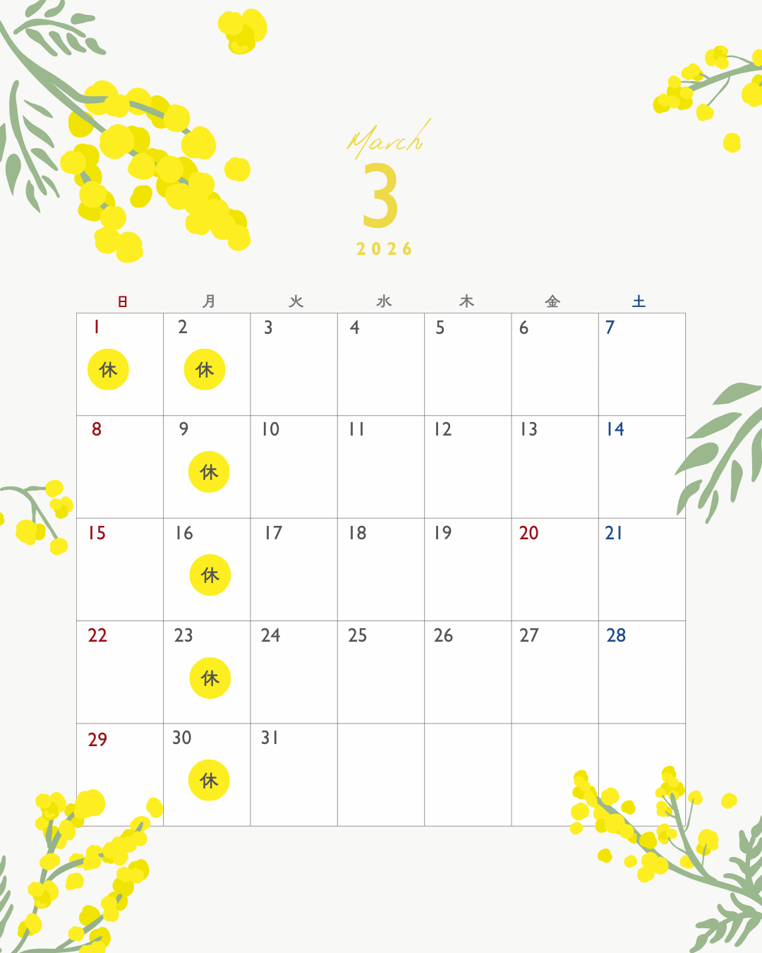 3月の営業予定のお知らせ