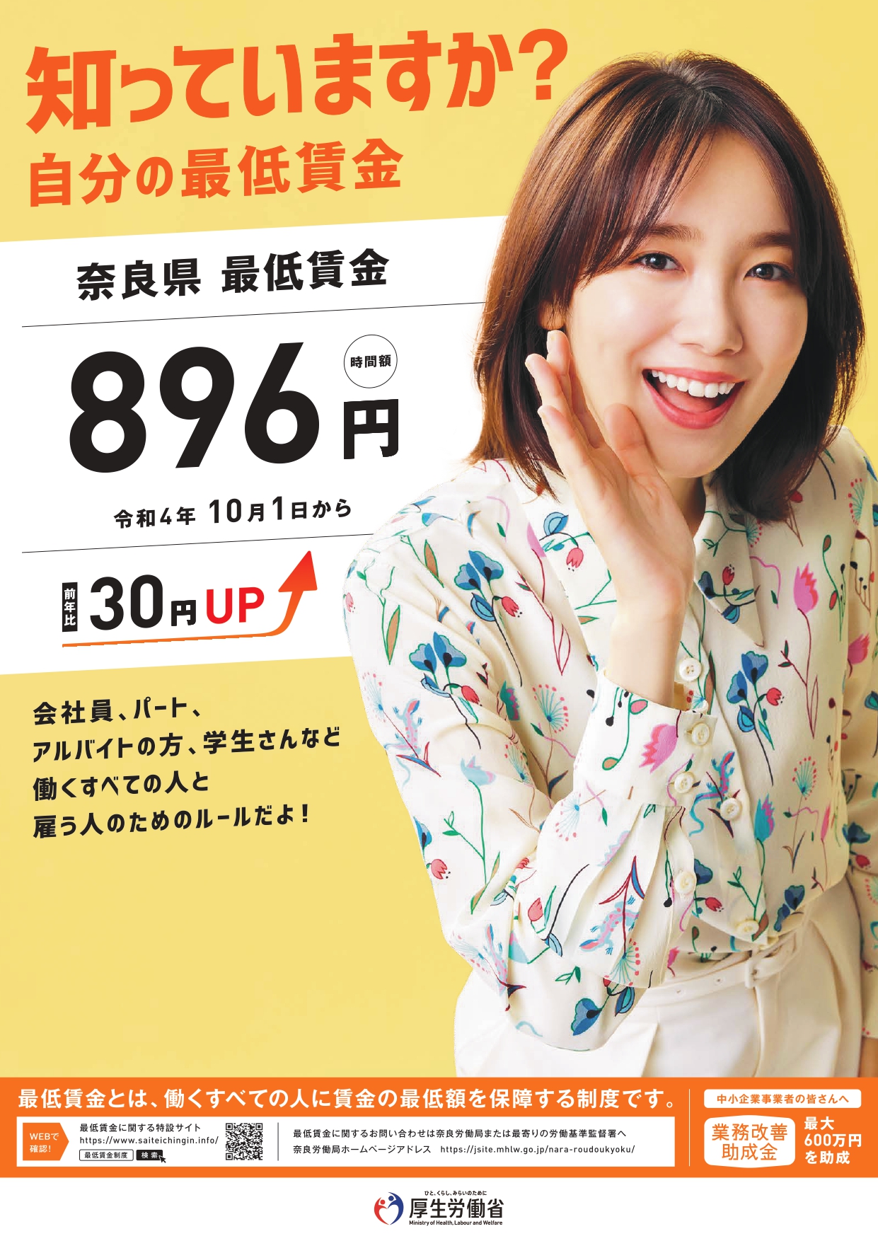 10月1日より、奈良県の最低賃金が改正となりますのでお知らせいたします。