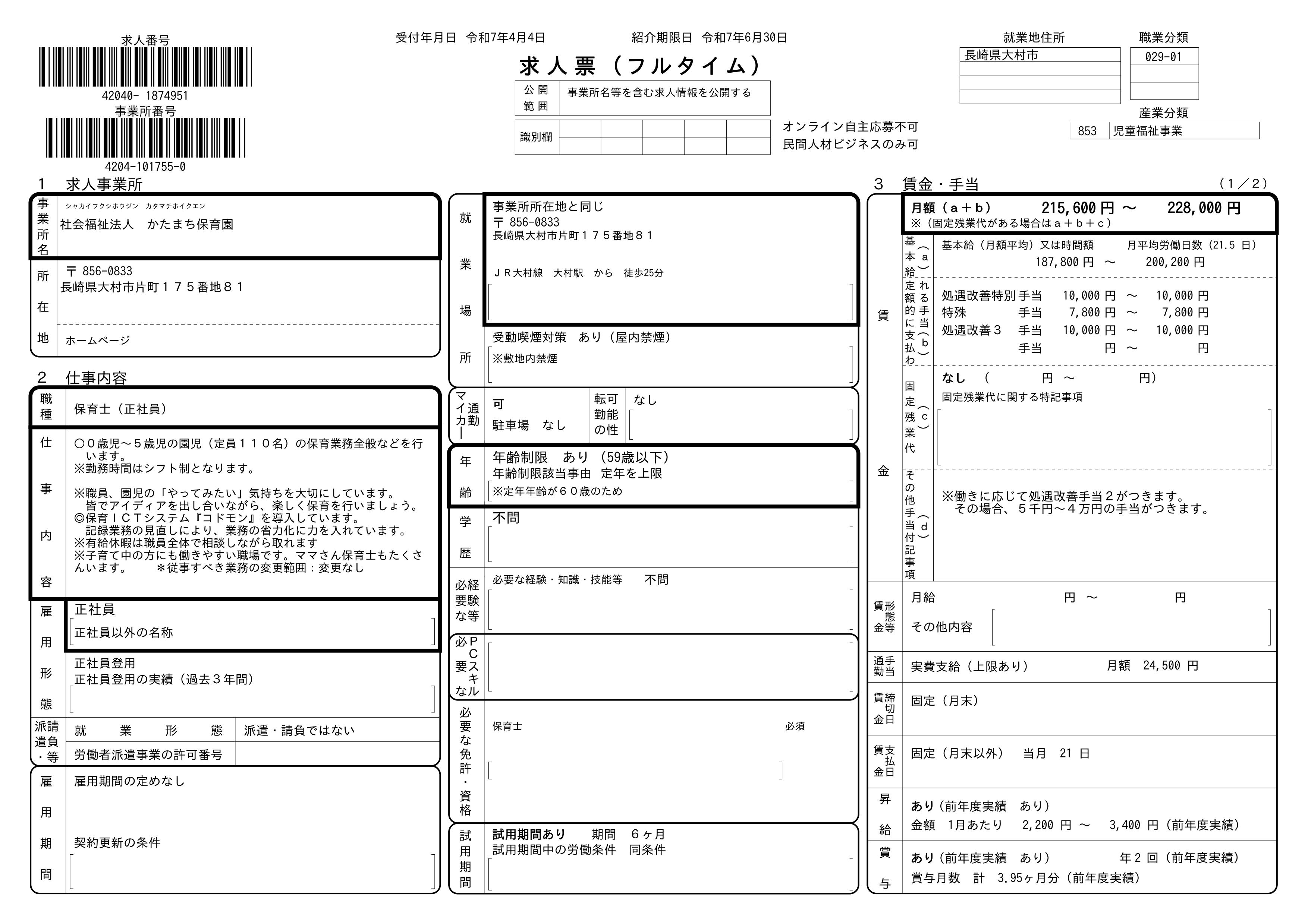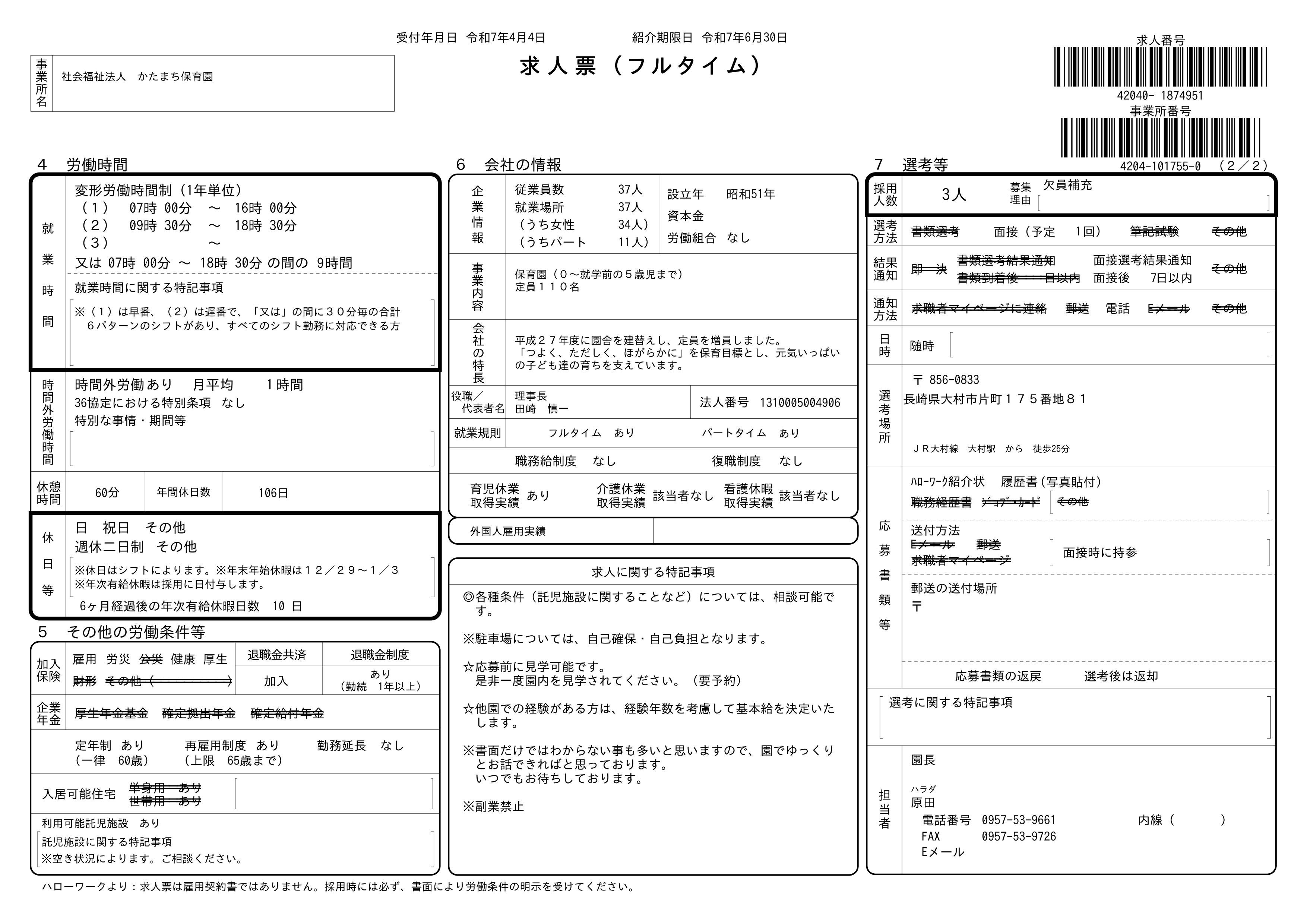 下記の内容は、 ハローワークに掲載しているものと同様です。