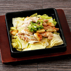 鶏せせりのネギ塩鉄板炒め
