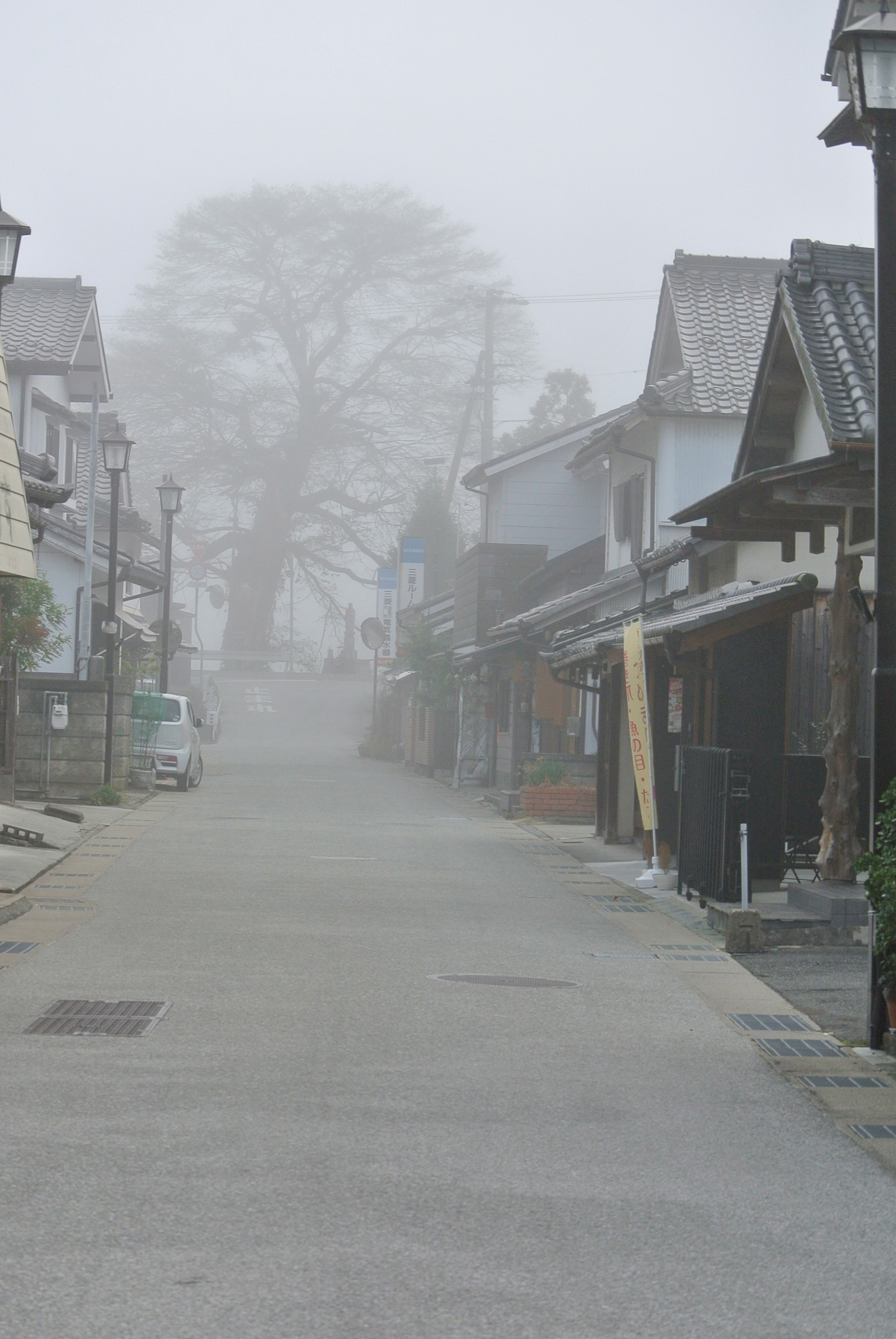 朝霧の立ちこめる河原町