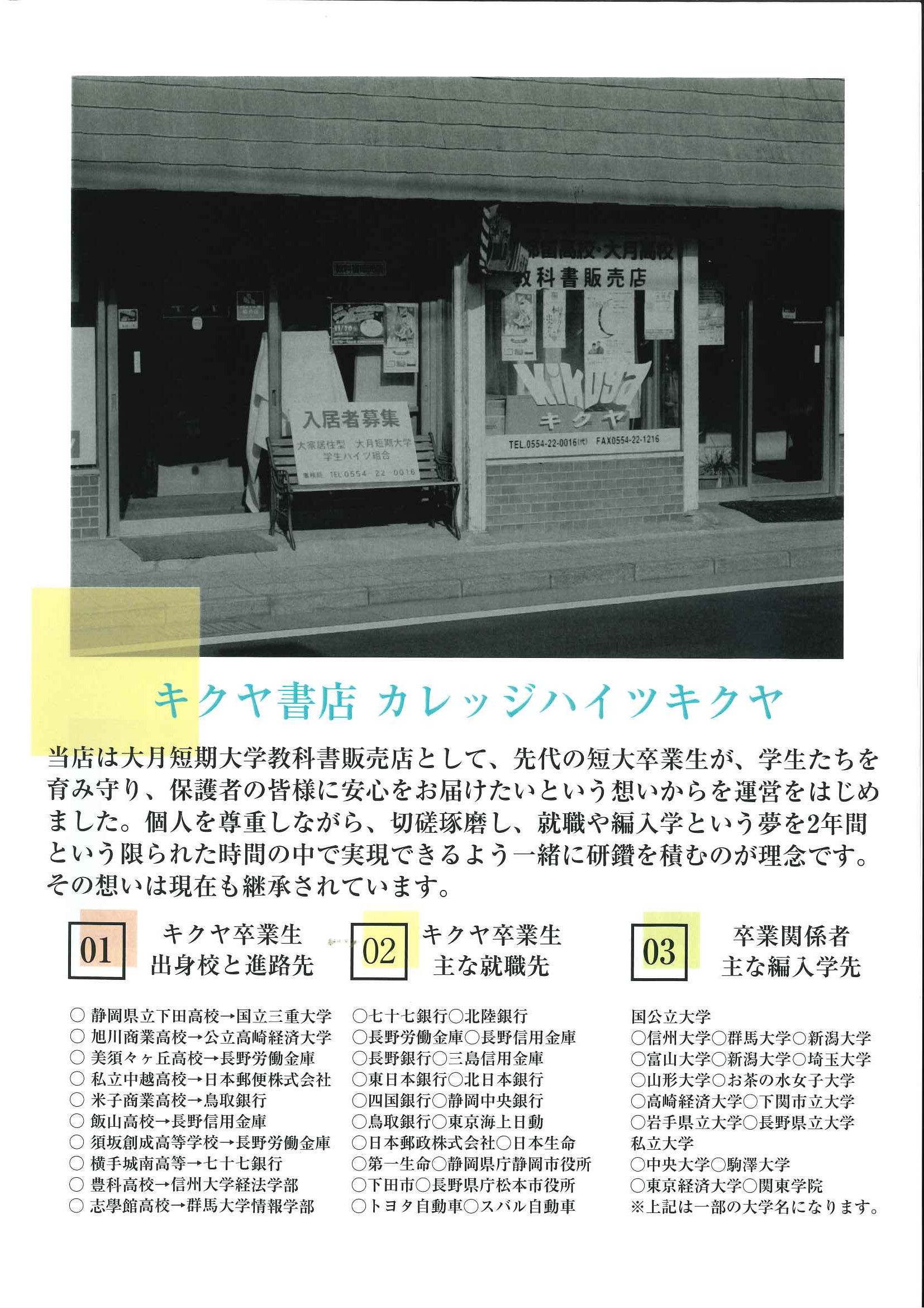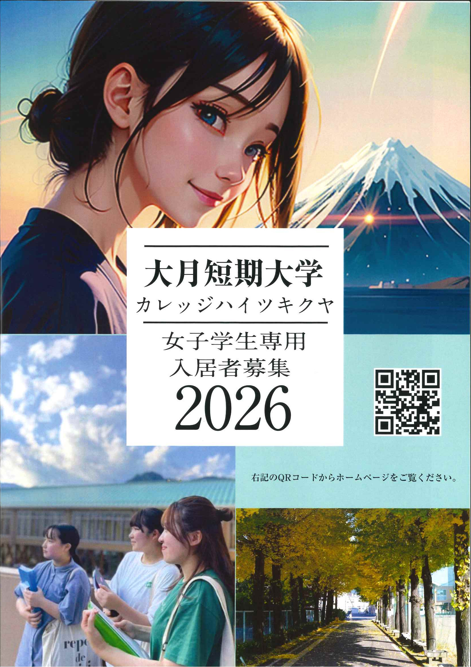 大月短期大学内にある学生ハイツ組合のパンフレットをお持ちください。