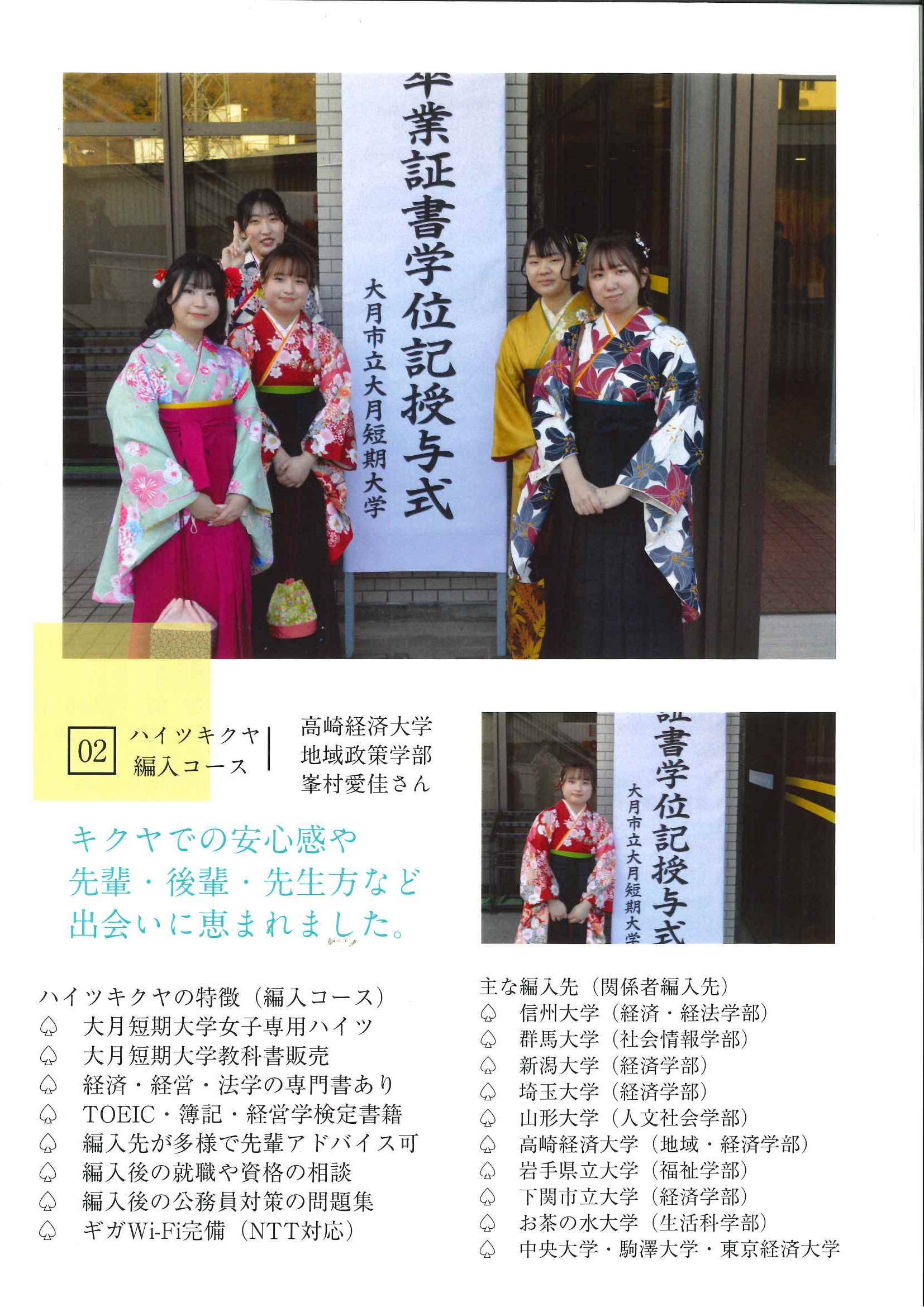 v カレッジハイツキクヤ・当組合、近年の編入学合格先