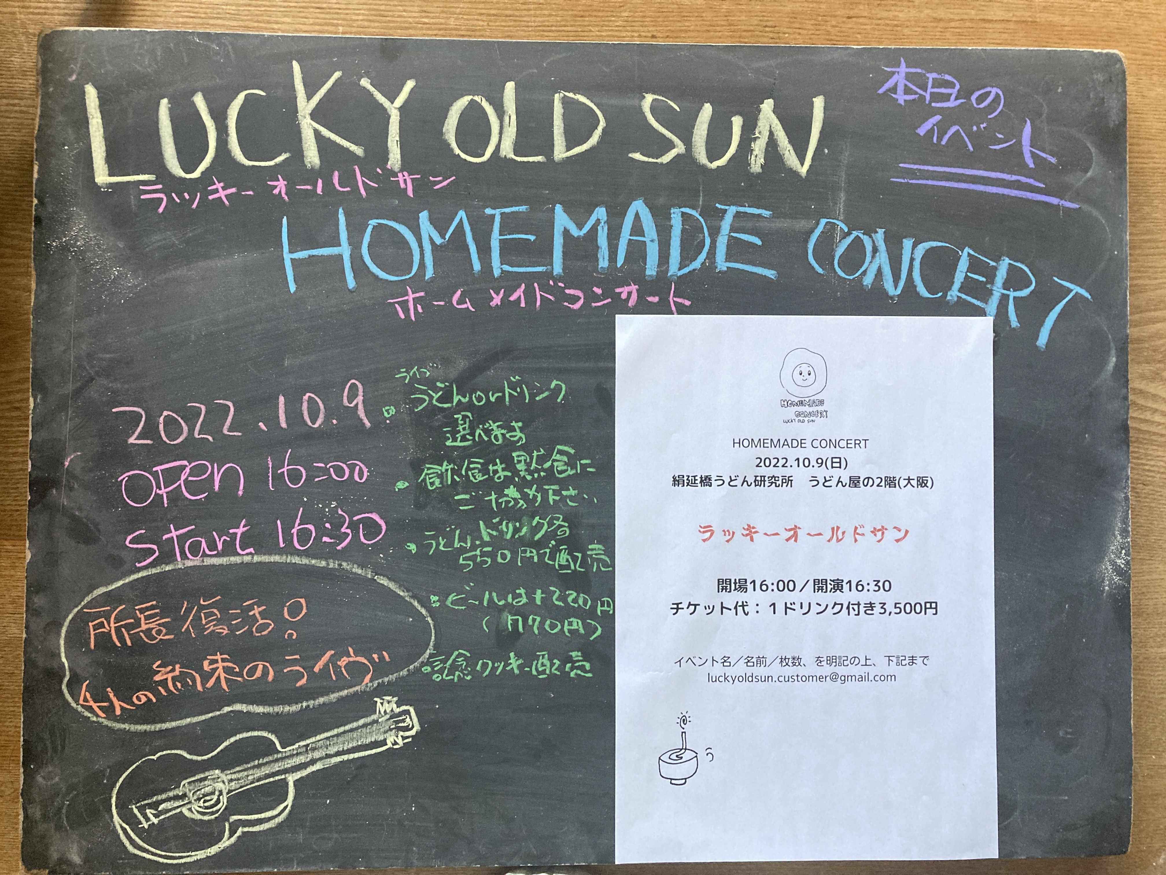 約束のライブ10/9ラッキーオールドサン@うどん屋の2階ご参加の皆さんへ。