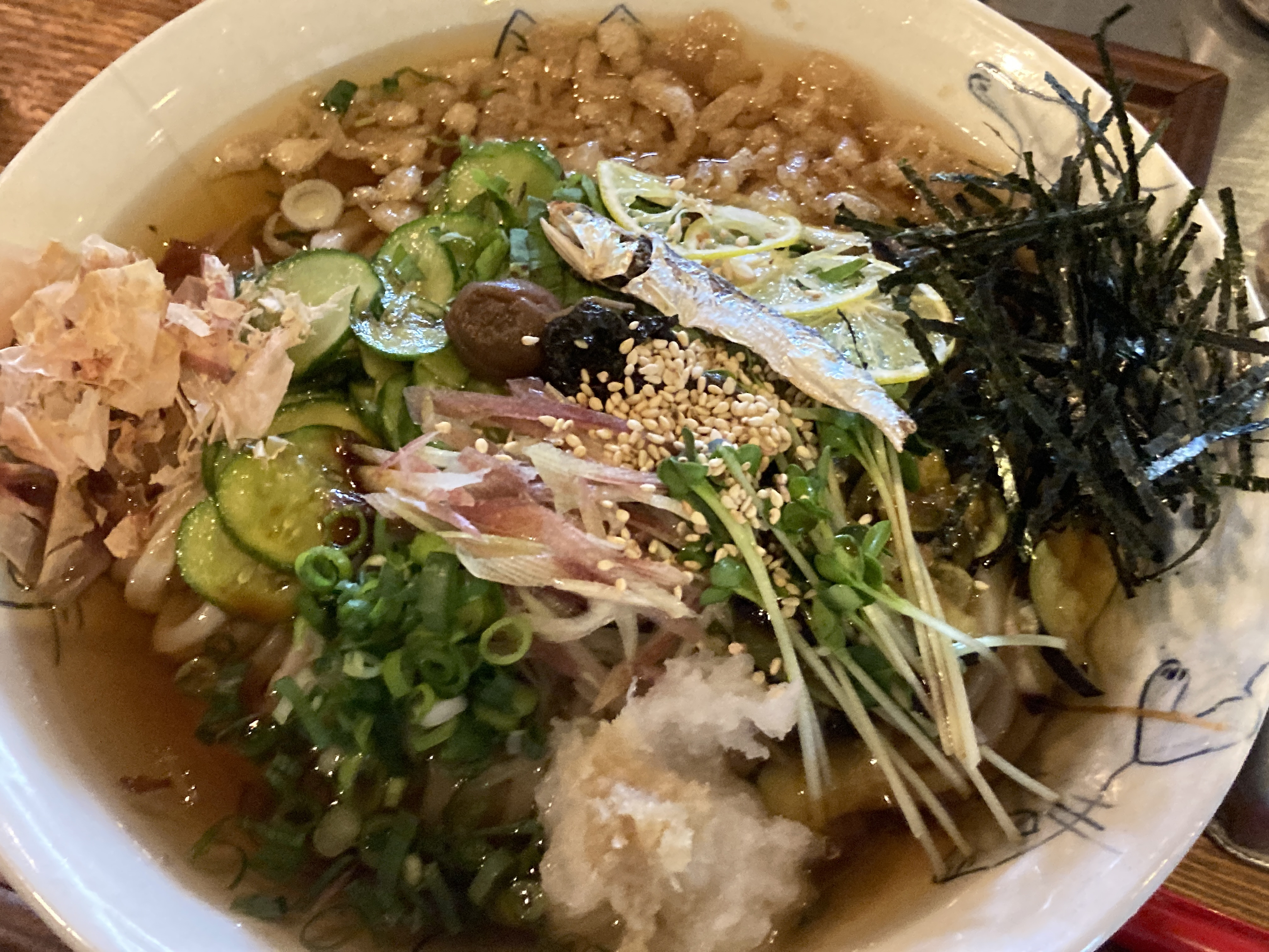 たっぷりのお野菜とさっぱりお出し、お茶漬けみたいな夏のうどん。
