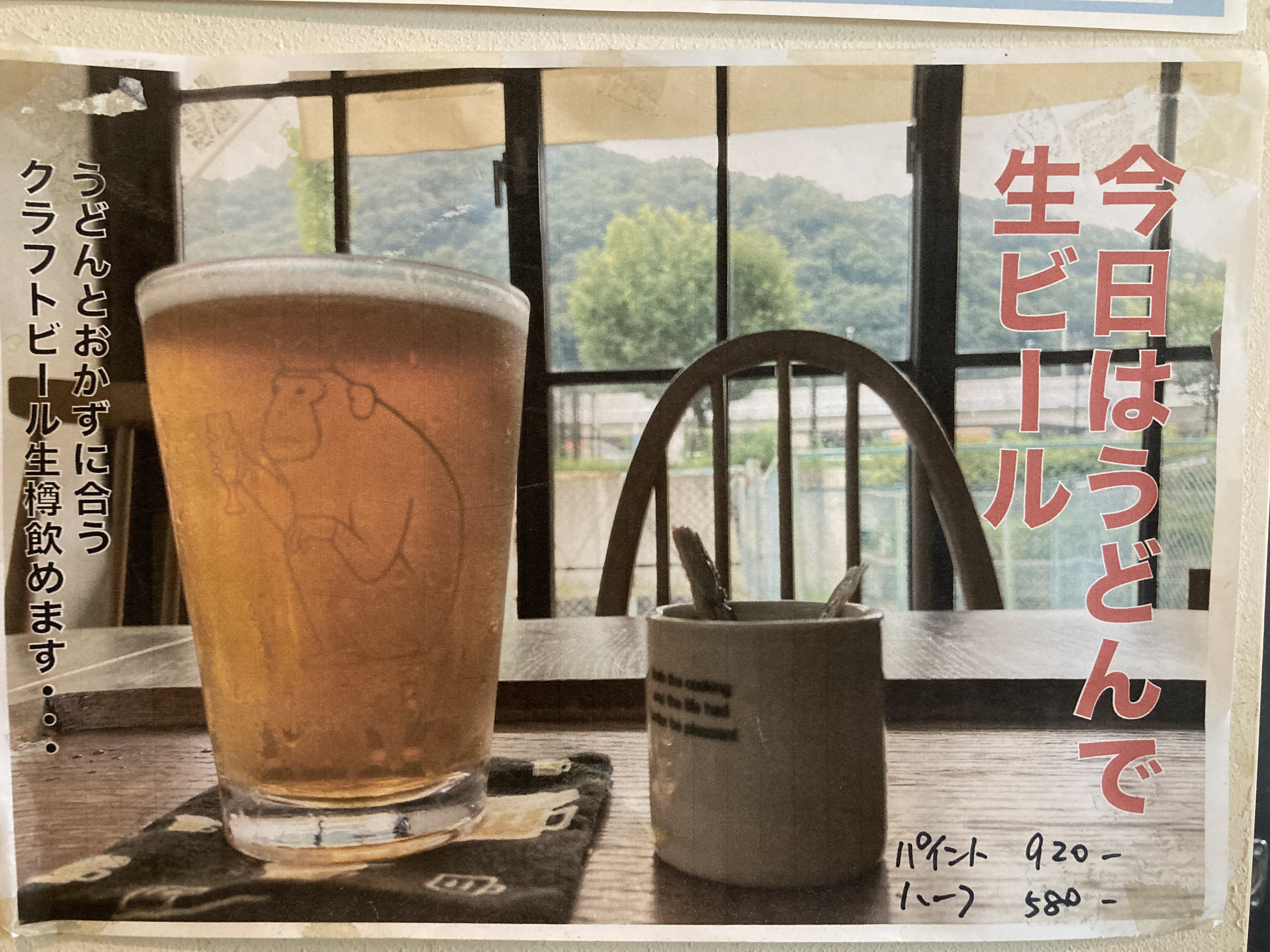 絹う研自慢の生樽クラフトビール、それがうどんにもおかずにもあう、