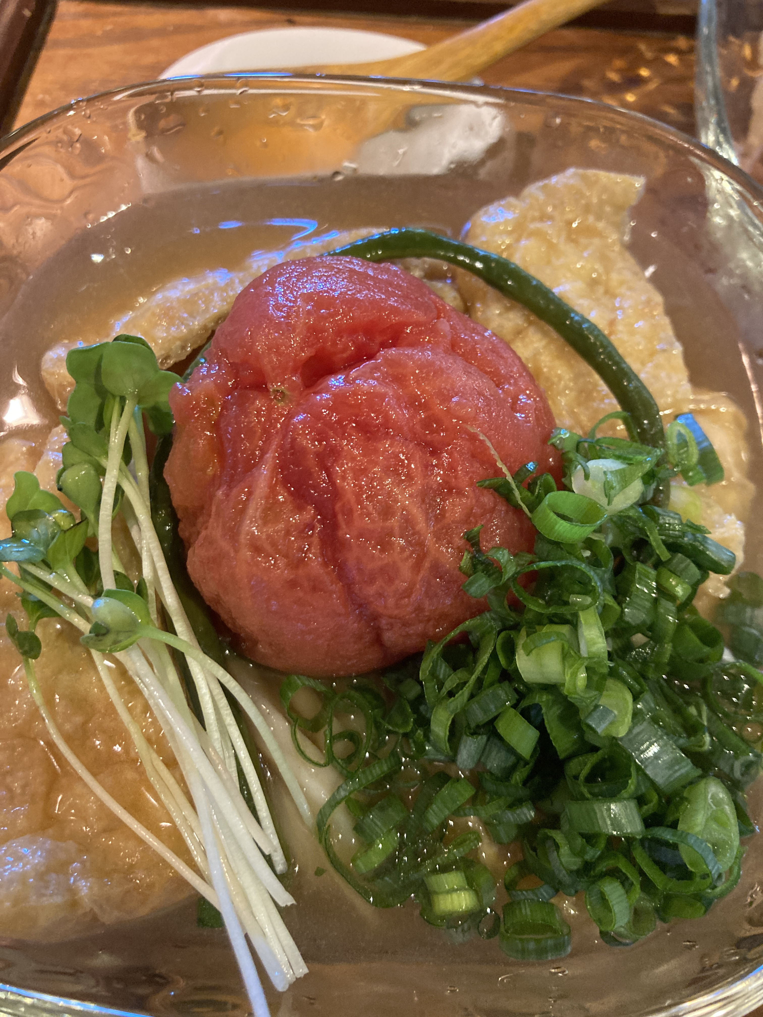 熱(あつ) → トマトと薄揚げのおでん風うどん