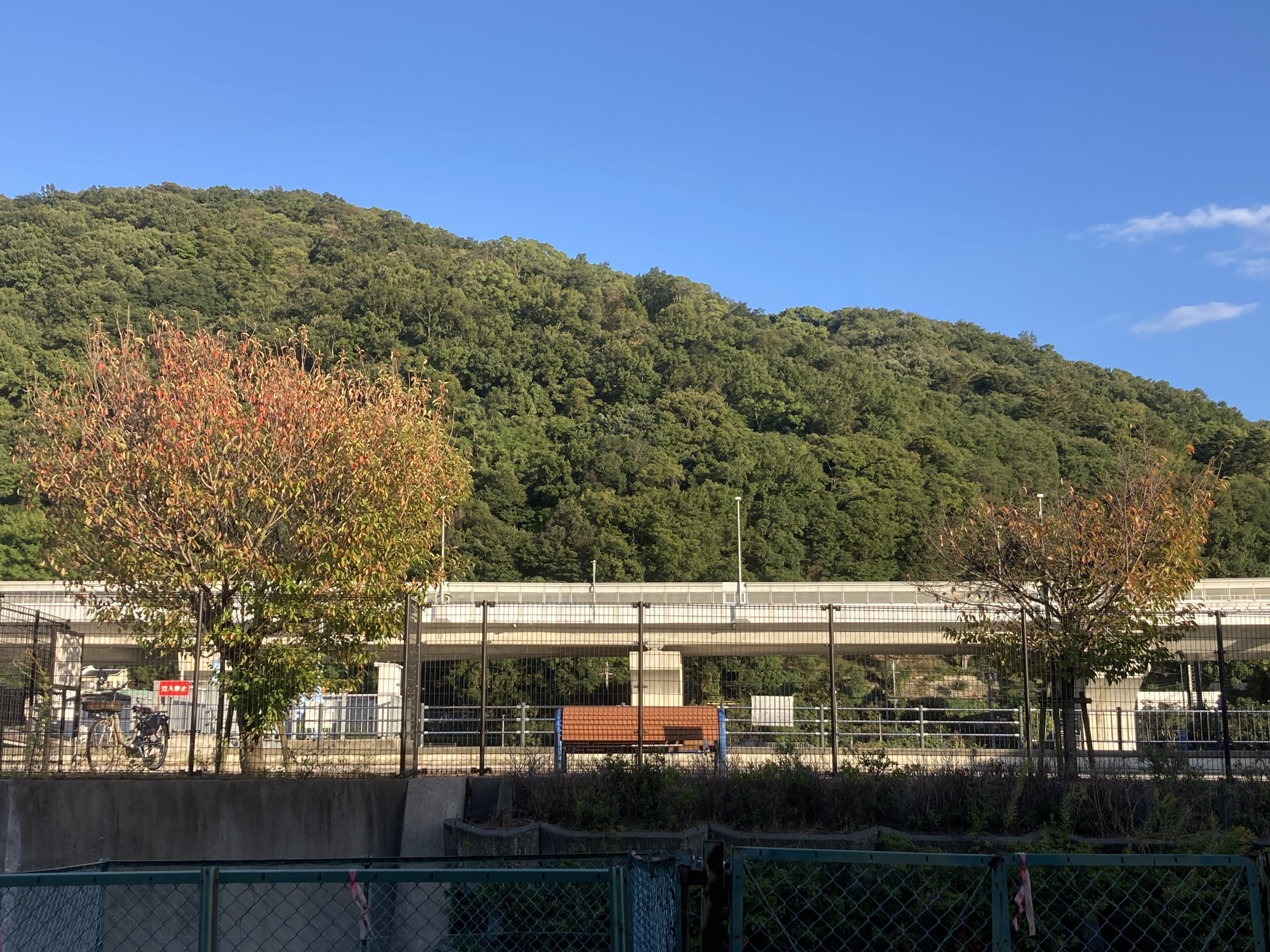 絹延橋の駅前から五月山を眺めると、