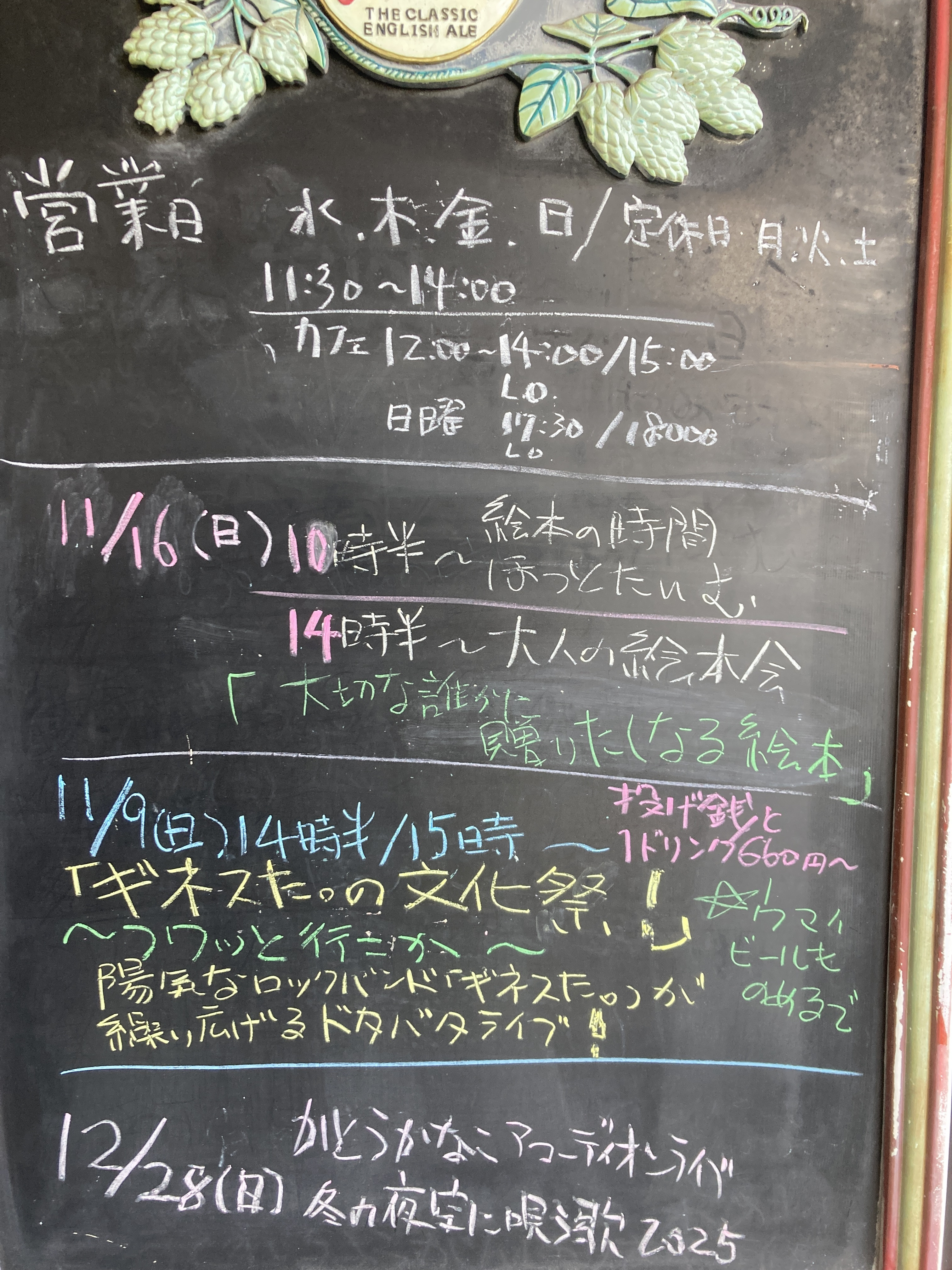 2025年10/22(水)〜26(日)昼営業11時半〜14時