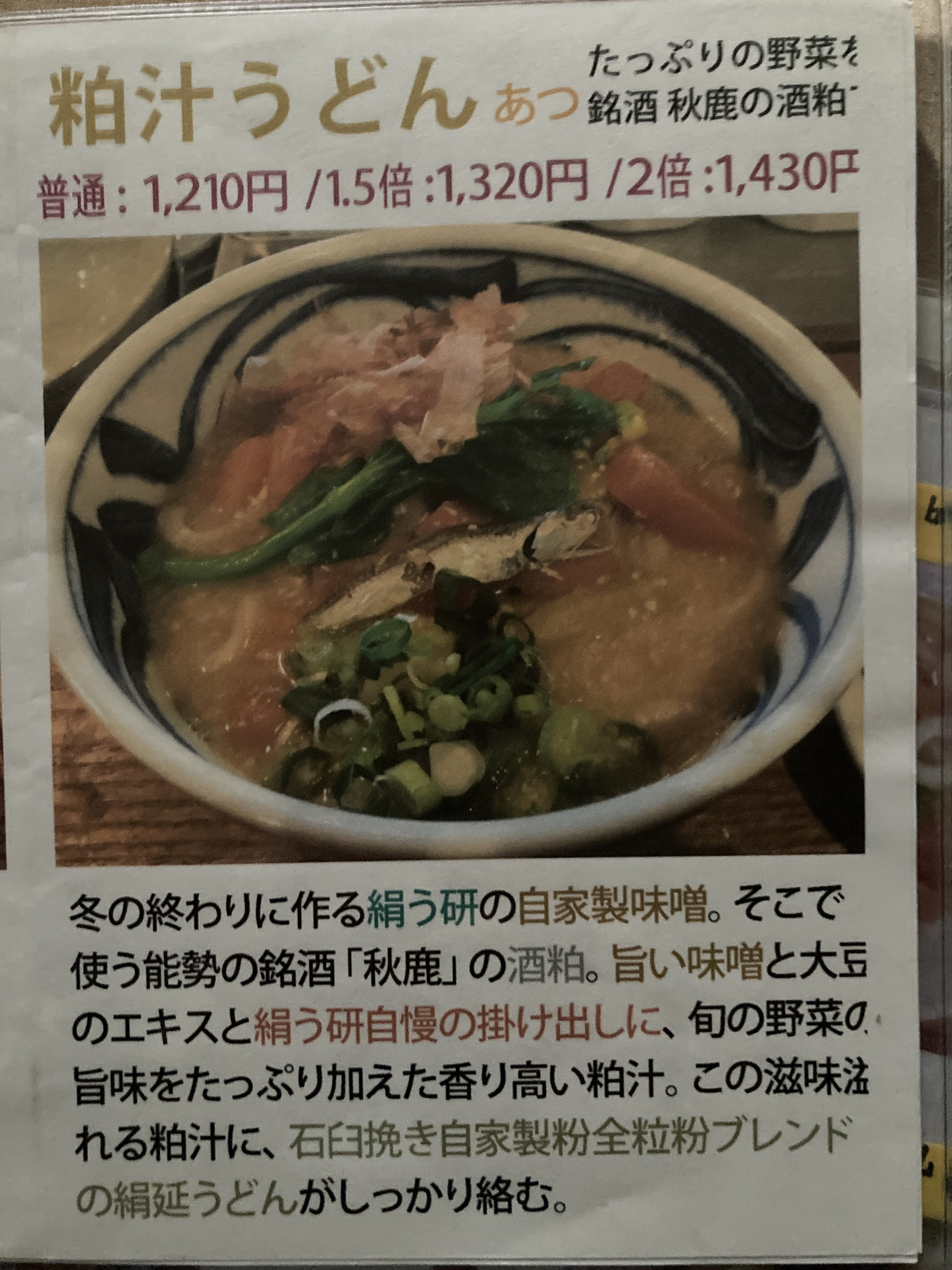 酒粕うどん・・・どうぞお楽しみ下さい。